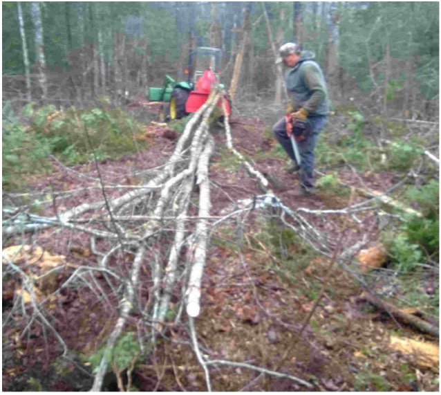 When originally purchased ten years ago, the wood lot had not been managed and no trees had been cut during the previous sixty years– a rarity for woodlots in Maine. The woods is approximately half softwood and half hardwood and was in need of sustainably managed cutting. The owners employed the help of a certified forester to guide their selective cutting of timber to bring about better tree growth. After careful evaluation, the forester estimated that fifteen to twenty cords of hardwood and softwood could be cut sustainably for firewood and timber.