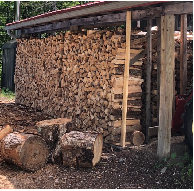 A covered wood shed stores approximately 14 cords of wood, which is enough to last through the winter.A covered wood shed stores approximately 14 cords of wood, which is enough to last through the winter.